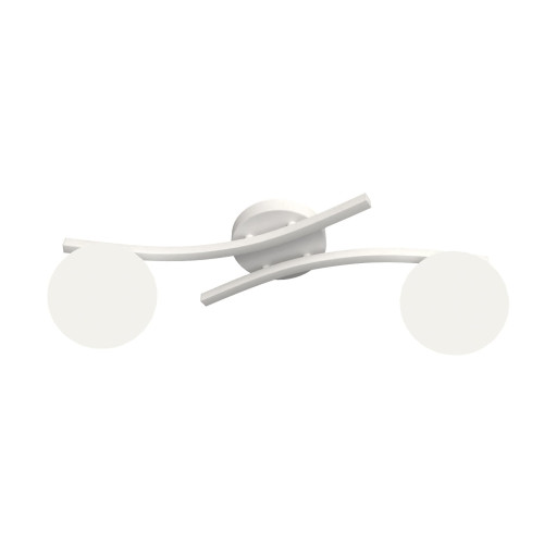Elegant ceiling lamp with a minimalist design from the series Opus, made of a white colour metal base and arms with two spherical glass shades in opal colour. A great idea for interior lighting in your living room, dining room, bedroom, hallway, hotel and restaurant.