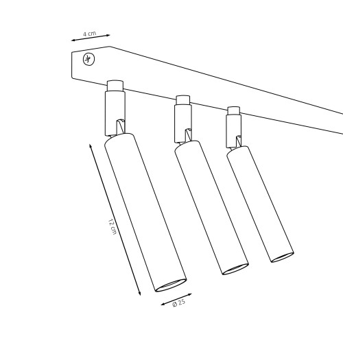 Functional spot lamp with a minimalist design from the series Ivi, made of a black colour metal base with arms and six adjustable cylindrical metal heads on a G9 socket. Modern proposal for practical and comfortable lighting of your living room, bedroom, hallway, office, hotel and restaurant.