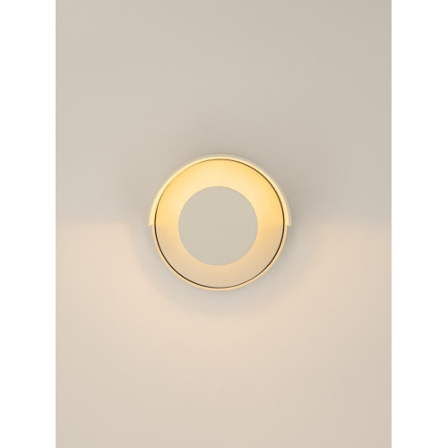 Stylish facade wall lamp with a high degree of ingress protection: IP65, made of white matt colour round aluminium body with a clear polycarbonate diffuser. Original solution for outdoor lighting of the facade, entrance door, porch and terrace of your home, villa and hotel.