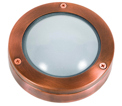 Stylish facade surface mounting lamp with a high degree of ingress protection IP64, made of a antique copper colour round solid brass body with a transparent glass diffuser. Great solution for the outdoor lighting of the facade, porch and terrace of your home, villa, hotel and restaurant.