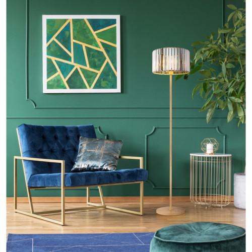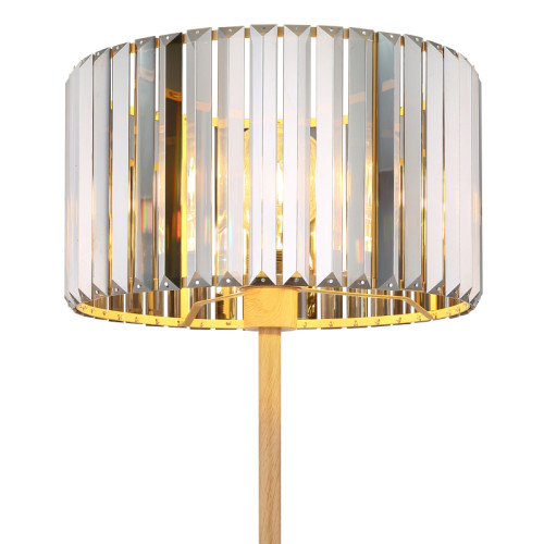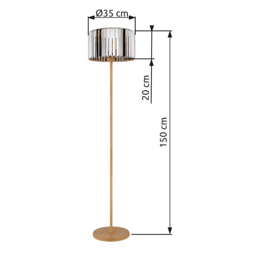 Stylish floor lamp from the series Run, made of a metal base imitating wood and cylindrical shade of smoked crystals. Modern proposal for the comfortable lighting of your living room, dining room, bedroom, hotel and restaurant.