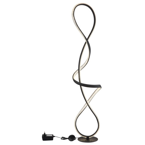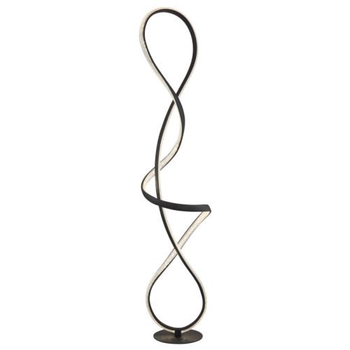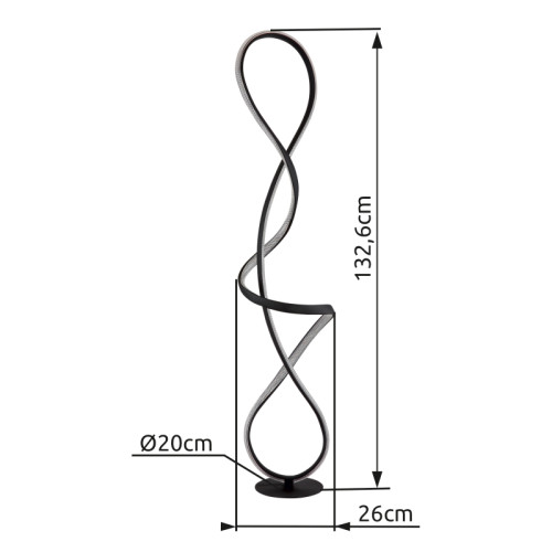 Stylish LED floor lamp from the series Swirl, made of a matt black colour metal base and an attractive curved aluminium body with a clear plastic diffuser and acrylic crystal decoration with a built-in 36W 4000K LED. An original proposal for the interior lighting of your living room, dining room, bedroom, hotel and restaurant.