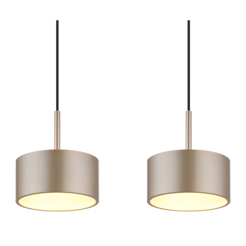 Stylish and modern LED pendant lamp from series Vanesia, made of satin brass colour round metal base..