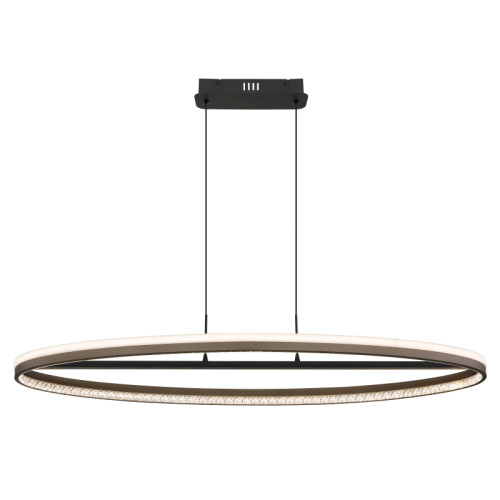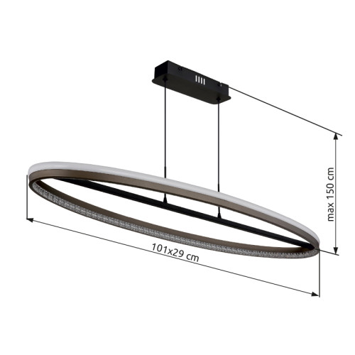 Modern LED pendant lamp from the series Della, made of matt black colour metal base and dark grey oval aluminium body with white plastic diffuser and clear plastic crystals with built-in 60W LED and the ability to select the colour temperature: 3000K/4000K/6000K and built-in dimmer. Quality lamp, suitable for the interior lighting of your living room, dining room, hotel and restaurant.