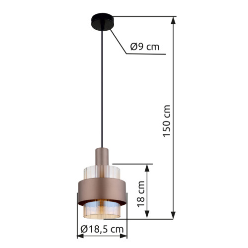 Modern pendant lamp from the series Milley, made of a black matt colour metal base and cylindrical metal shade in bronze colour with amber glass diffuser with a clear gradient finish. Stylish lamp, suitable for interior lighting of your living room, dining room, bedroom, hotel and restaurant.