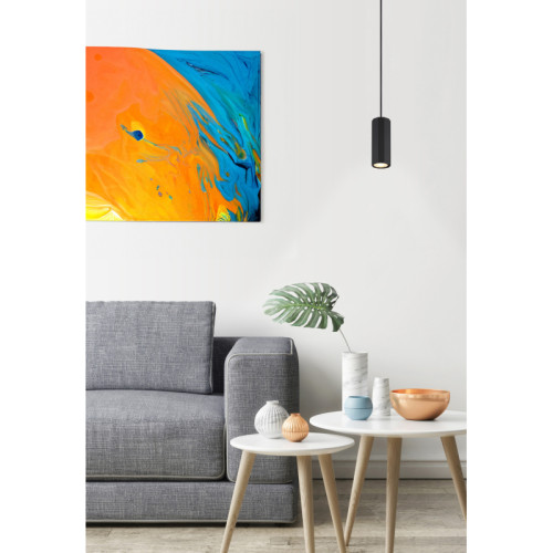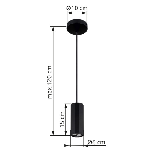 Modern pendant lamp from the series James, made of a matt black colour round metal base and cylindrical aluminium shade on a GU10 socket. Stylish solution for the interior lighting of your living room, dining room, hotel and restaurant.