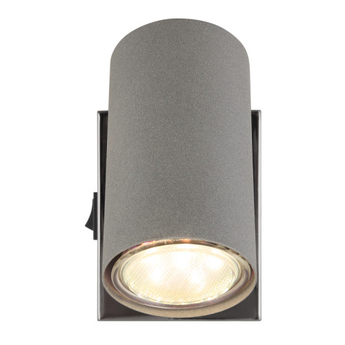 Modern spot lamp from the series Robby, made of a black chrome colour rectangular metal base with a built-in switch: ON/OFF and a grey colour adjustable metal head in a cylindrical shape on a GU10 socket. Practical lamp, suitable for modern and comfortable lighting of your living room, dining room, bedroom, hallway, hotel and restaurant.