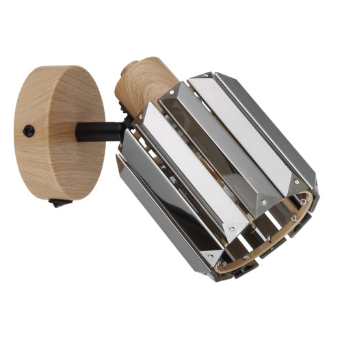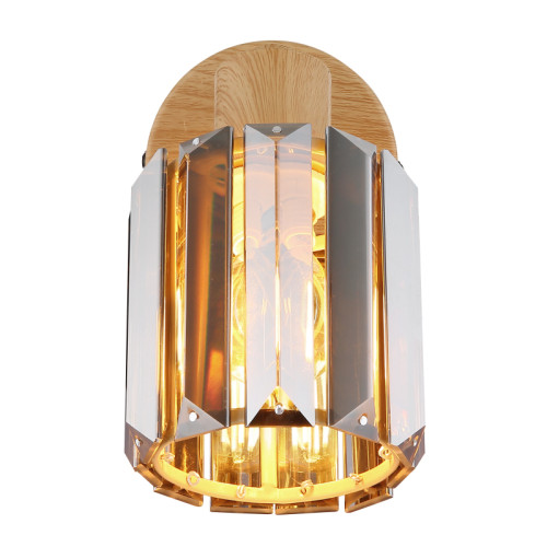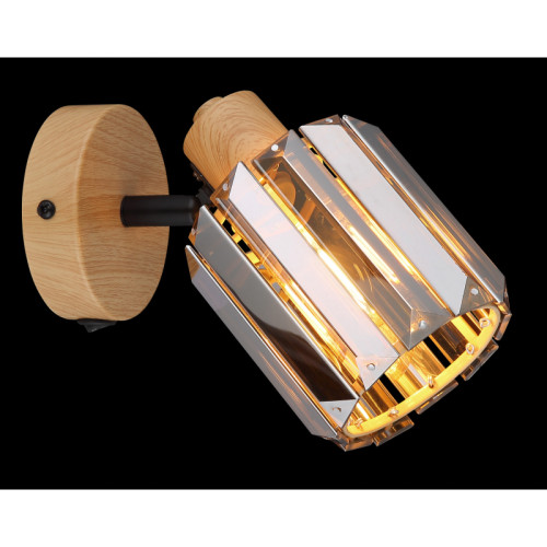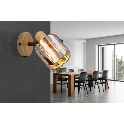 Stylish spot lamp from the series Run, made of a metal base imitating wood with a built-in switch: ON/OFF and adjustable cylindrical shade of smoked crystals. Modern proposal for the functional and comfortable lighting of your living room, dining room, bedroom, hallway, hotel and restaurant.