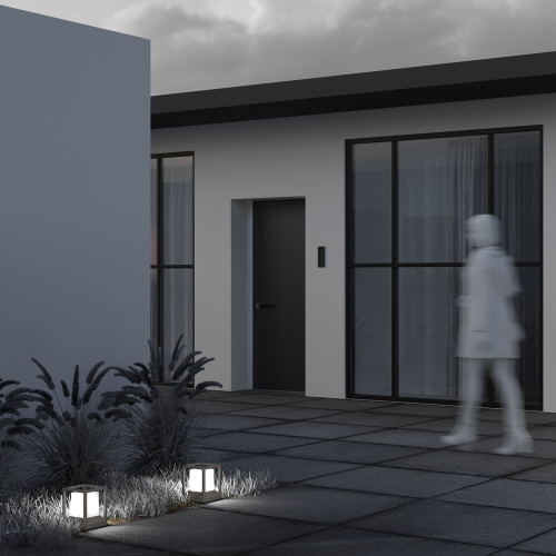 Stylish garden bollard lamp from the series Trim, made of graphite colour aluminium body and white acrylic diffuser. Modern lamp with a high degree of ingress protection: IP65, suitable for the comfortable lighting of the garden and alley in your home, hotel and restaurant.