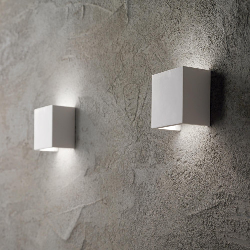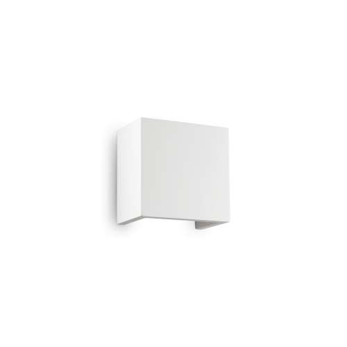 Stylish wall lamp, made of metal base and rectangular gypsum diffuser in white colour. Wall lamp with double light emission: up and down, suitable for the interior lighting in your modern living room, bedroom, hallway, hotel and restaurant.