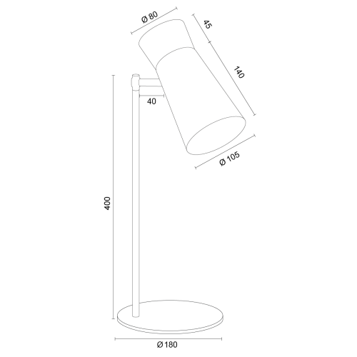 Dimensions: Height: 450mm, Width: 180mm, Length: 240mm, Length of the shade: 185mm, Diameter of the shade: 105mm
