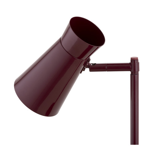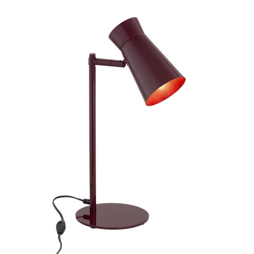 Modern table lamp with a functional design from the series Lord, made of a red colour round metal base with arm and adjustable metal shade. Stylish design solution for comfortable lighting in your bedroom, living room, office, hotel and restaurant.