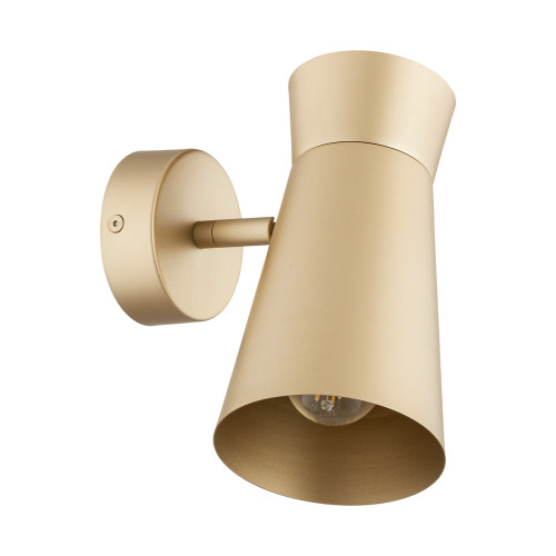 Modern wall lamp with a functional design from the series Lord, made of a gold colour round metal base with arm and adjustable metal shade. Stylish design solution for comfortable lighting in your bedroom, living room, office, hotel and restaurant.