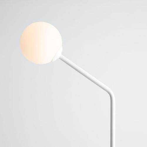Stylish floor lamp with a minimalist design from the series Pure, made of a white matt colour round metal base with arm and white matt colour spherical glass shade on an E14 socket. An original proposal for comfortable and modern lighting for your living room, dining room, bedroom, hotel and restaurant.