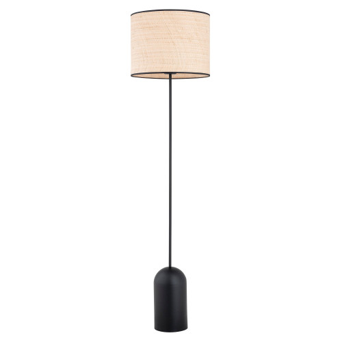 Original floor lamp in a modern style from the series Aspen, made of a black colour metal base with arm and a cylindrical shade of natural rattan. Stylish addition to the interior lighting of your living room, dining room, bedroom, office, hotel and restaurant.