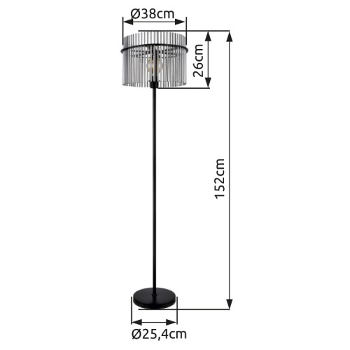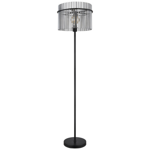 Stylish floor lamp with a sophisticated design from the series Gorley, made of a matt black colour metal base and cylindrical decorative shade of smoked glass rods. Great suggestion for comfortable lighting in your living room, dining room, hotel and restaurant.