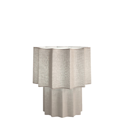 Modern table lamp in an original style from the series Wavy, made of a metal base covered with linen and a grey colour cylindrical linen shade with a wavy design. Stylish offer for the comfortable lighting of your living room, dining room, bedroom, hotel and restaurant.