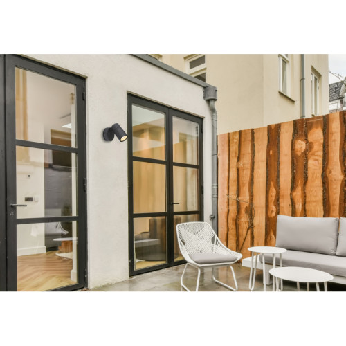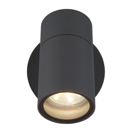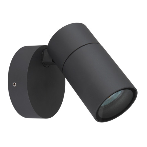 Modern spot lamp from the series Piper with a high degree of ingress protection: IP44, made of an anthracite colour round aluminium base and adjustable aluminium head in a cylindrical shape with transparent glass diffuser on a GU10 socket. A functional lamp, suitable for high-quality and comfortable lighting of your bathroom, facade, porch and terrace.