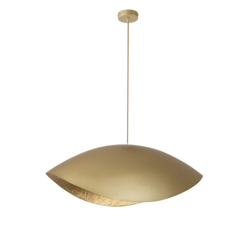 Stylish pendant lamp from the series Sona, made of a gold colour round steel base and an original curved shade of mineral composite in gold colour. Modern lamp, suitable for comfortable and original lighting of your living room, dining room, bedroom, hotel and restaurant.