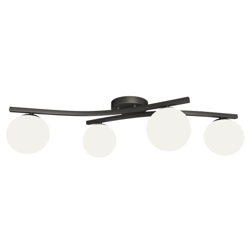 Elegant ceiling lamp with a minimalist design from the series Opus, made of a black colour metal base and arms with four spherical glass shades in opal colour. A great idea for interior lighting in your living room, dining room, bedroom, hallway, hotel and restaurant.