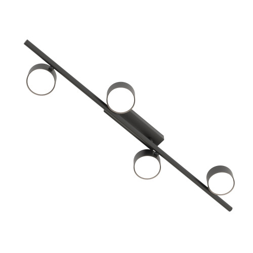 Stylish ceiling lamp with a minimalist design from the series Bet, made of a black colour metal base with an arm and four metal heads in black colour on a GX53 socket. Modern proposal for interior lighting in your living room, dining room, bedroom, hallway, office, hotel and restaurant.