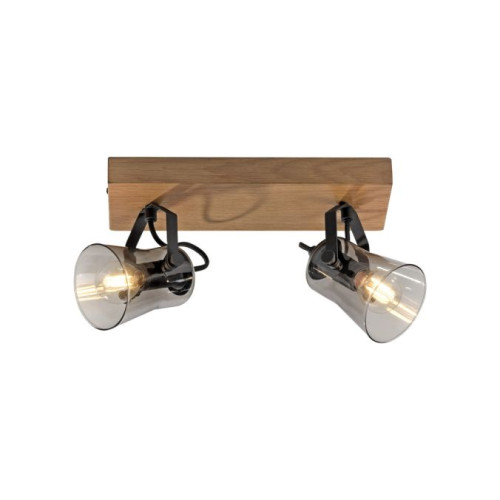 Original spot lamp from the series Green Langstrom, made of a rectangular natural oak base with black metal arms and two adjustable smoked glass shades. Stylish proposal for the functional lighting of your living room, dining room, bedroom, hallway, hotel and restaurant.