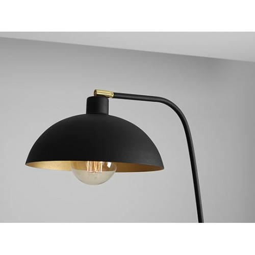 Original floor lamp with a functional design from the series Espace, made of a black matt colour metal base with long arm and fully adjustable hemispherical metal shade in black matt colour on the outside and gold inside of the E27 socket. Modern solution for comfortable and stylish lighting of your living room, dining room, bedroom, office, hotel and restaurant.