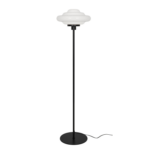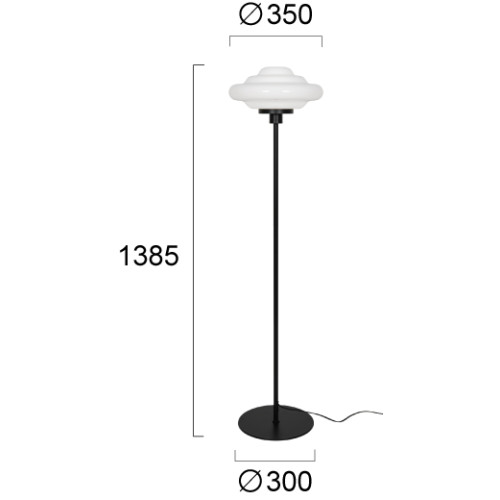 Stylish floor lamp with a modern design from the series Elsa, made of a black colour metal base and an opal glass shade with an attractive shape. An original lamp, suitable for the comfortable lighting of your living room, dining room, bedroom, hotel and restaurant.