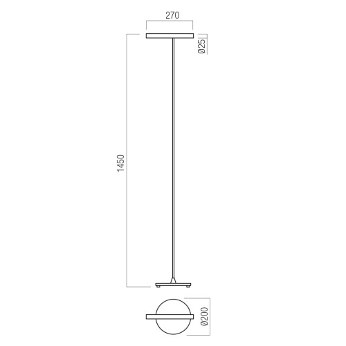 Dimensions: Height: 1450mm, Diameter of the head: 25mm, Length of the head: 270mm, Diameter of the base: 60mm