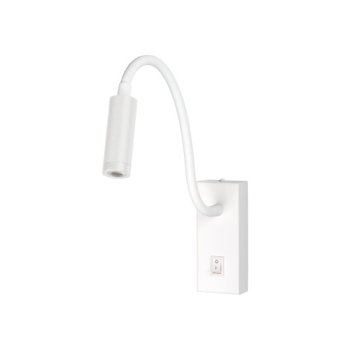 Modern LED wall lamp from series Tonil, make of white colour rectangular aluminium base with integrate ON/OFF switch, and white colour flexible rubber arm with cylindric head with integrate 3,3W LED, 3000K, 145lm. Wall lamp, suitable for your bedroom and hotel.