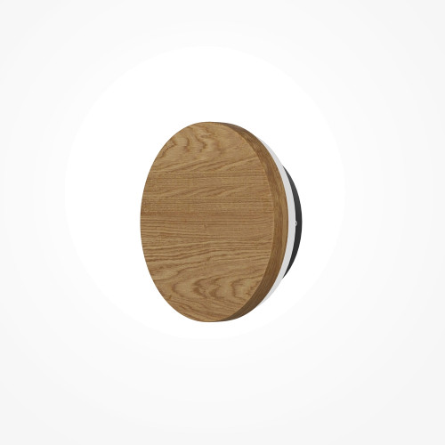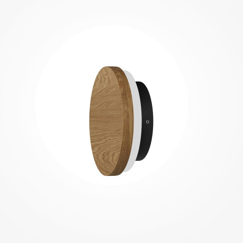 Stylish LED wall lamp with a minimalist design from the series Basic Texture, made of a black colour metal base and a round natural wooden body with a built-in 5W LED and the ability to choose the color temperature: 2700K/3000K/4000K. Modern proposal for lighting your living room, dining room, bedroom, hotel and restaurant.