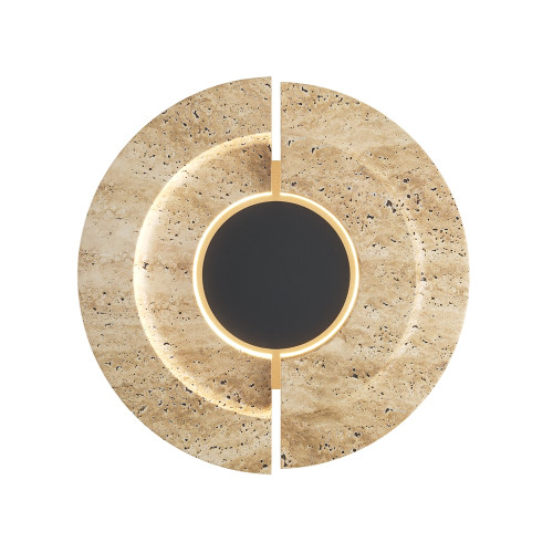 Modern LED wall lamp, made of a black colour metal base and an attractive beige travertine body with a built-in 10W, 3000K LED and indirect light distribution. An original proposal for the stylish lighting of your living room, dining room, bedroom, hotel and restaurant.