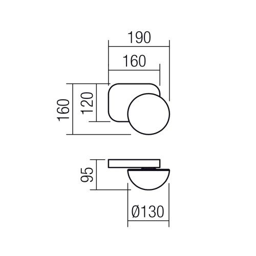 Dimensions: Height: 160mm, Length: 190mm, Distance from the wall: 95mm, Diameter of the shade: 130mm