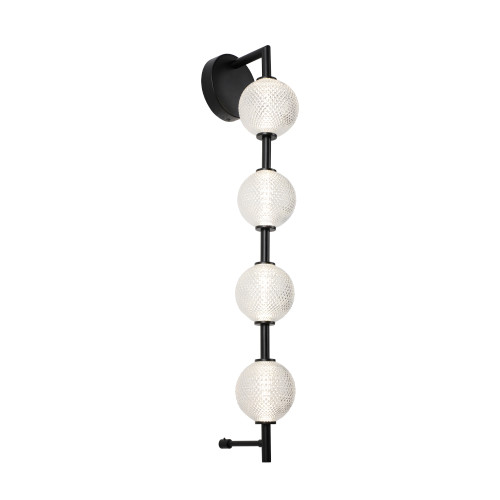 Original LED wall lamp from the series Abeona, made of black colour metal base and black metal arm with transparent glass diffusers in spherical shape and built-in 15W, 4000K LED. Stylish solution for comfortable lighting in your living room, dining room, bedroom, office, hotel or restaurant.