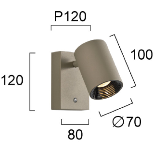 Dimensions: Height: 120mm, Width: 80mm, Diameter of the head: 70mm, Length of the head: 100mm, Distance from the wall: 120mm