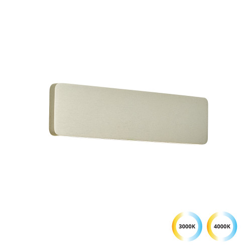 Elegant LED wall lamp from the series Kelda, made of a silver colour rectangular metal body with two-sided light diffusion and a built-in 12W LED with the ability to change the colour temperature via a switch from 3000K to 4000K. Modern solution for the interior lighting of your home, office, hotel and restaurant.