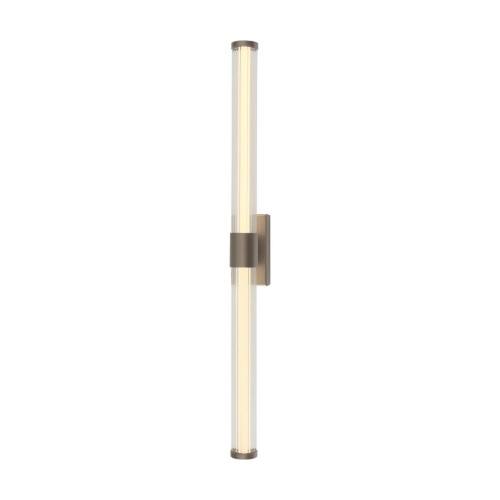 Elegant LED wall lamp from the series Eddie, made of a brown colour metal base and a cylindrical glass diffuser with a built-in 12W, 3000K LED and dimmable via a wall switch. Modern lamp with a high degree of ingress protection: IP44, suitable for lighting your bathroom and wet room.