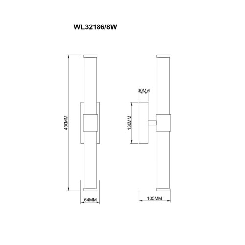 Dimensions: Width: 64mm, Height: 430mm, Distance from the wall: 105mm