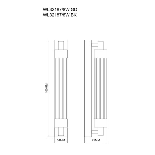 Dimensions: Width: 54mm, Height: 400mm, Distance from the wall: 95mm