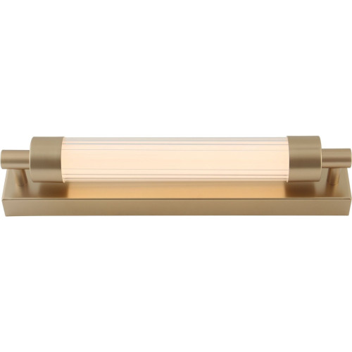 Stylish LED wall lamp from the series Kalia, made of a matt gold colour rectangular metal base and a cylindrical glass diffuser with a built-in 8W, 3000K LED and dimmable via a wall switch. Modern lamp with a high degree of ingress protection: IP44, suitable for lighting your bathroom and wet room.
