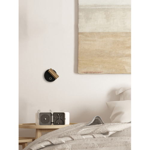 Stylish LED wall lamp, made of matt black colour round metal base with built-in touch dimming switch and cylindrical aluminium LED head in brass colour with built-in 3W, 3000K LED. Modern lamp, suitable for lighting in your bedroom, living room, office, hotel and restaurant.