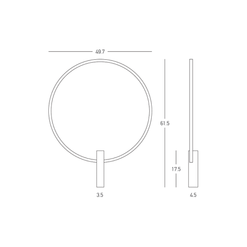Dimensions: Height: 615mm, Width: 497mm, Distance from the wall: 45mm