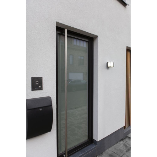 Modern LED facade wall lamp from the series Doblo, made of dark grey colour aluminium body and opal polycarbonate diffuser in a cubic shape with a built-in 14.5W, 3000K LED. Stylish lamp with a high degree of ingress protection: IP54, which will fill with quality light and comfort the facade, veranda and terrace in your home, villa, hotel and restaurant.