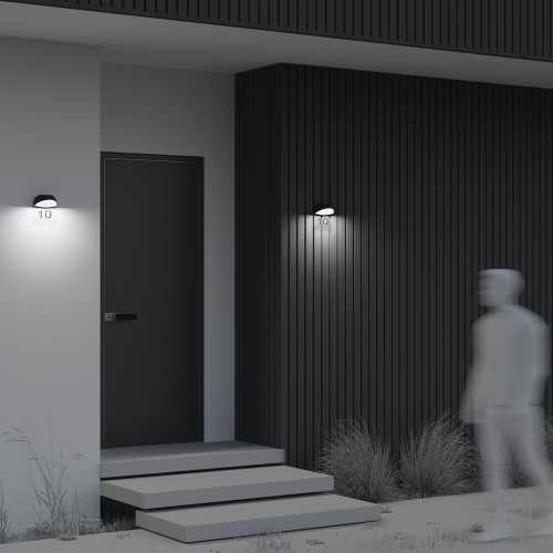 Modern LED facade wall lamp, made of graphite colour aluminium body and matt white acrylic diffuser with built-in 7W, 3000K LED. Stylish lamp with a high degree of ingress protection: IP65, suitable for comfortable lighting of the facade, entrance door, terrace and porch in your home, hotel and restaurant.