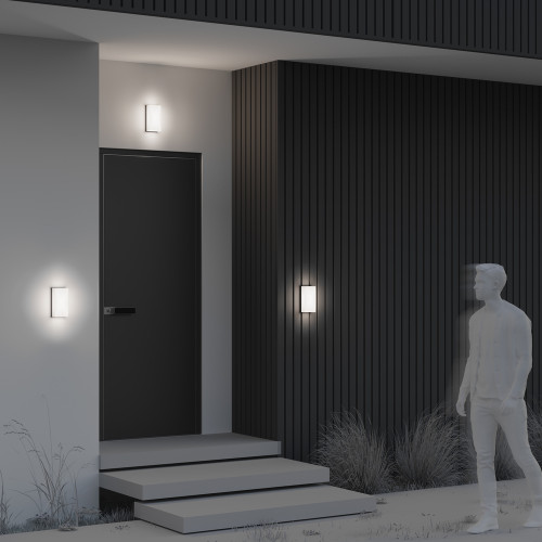 Modern LED facade wall lamp from the series Badd, made of graphite colour aluminium base with a matt white acrylic diffuser in a rectangular shape and built-in 10W, 3000K LED. Stylish lamp with a high degree of ingress protection: IP54, suitable for the outdoor lighting of your facade, porch or terrace.