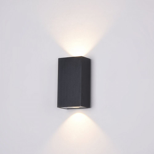 Modern LED facade wall lamp made of black metal body with rectangular shape, illuminated on both sides and resistant to thermal shock and corrosion. Excellent solution for outdoor lighting on every facade, porch, terrace, hotel or restaurant.