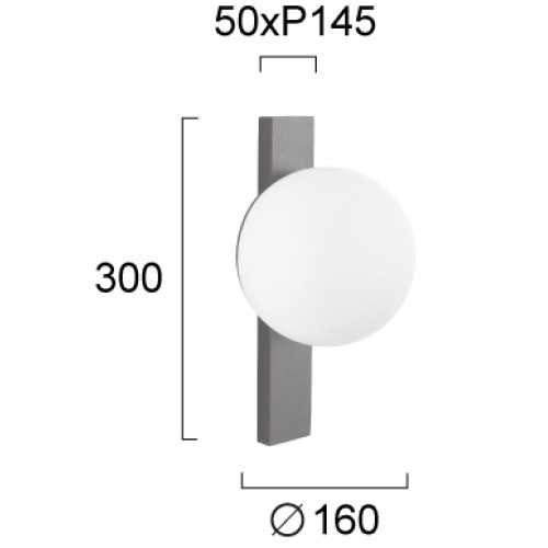 Dimensions: Height: 300mm, Diameter: 160mm, Distance from the wall: 145mm