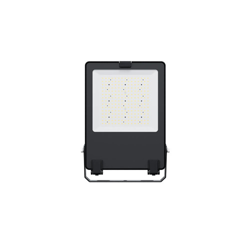 Modern ultra slim LED projector with high ingress protection IP66, with consumption of 150W Lumileds Chip, 23250lm, 6000K, beam angle 110º . Made of black colour aluminium body with transparent glass diffuser with high UV protection. Quality light suitable for the exterior lighting of your store, workshop, garage, facade or garden.