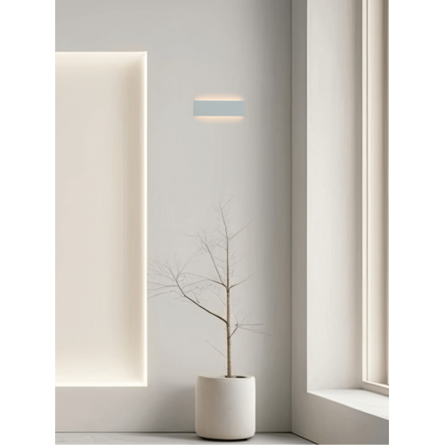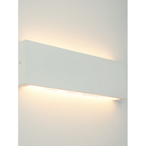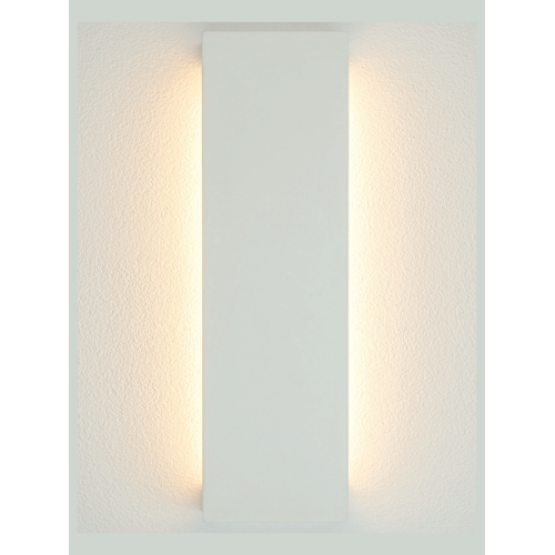 Modern LED wall lamp with an elegant design, made of a white colour thin rectangular gypsum body with a built-in 8.25W 3000K LED and two-sided light distribution. An original solution for the interior lighting of your living room, bedroom, hallway, office, hotel or restaurant.