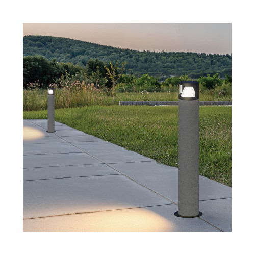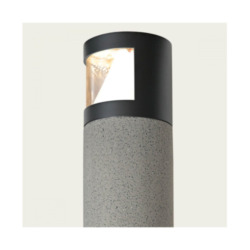 Original LED garden bollard lamp, made of black colour metal and grey concrete in a cylindrical shape with a plastic diffuser and a built-in 10W, 3000K LED. Modern outdoor lamp with a high degree of ingress protection: IP65, suitable for quality and cozy lighting of the garden, park and alley in your home, villa, hotel and restaurant.